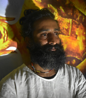 Born in 1984, I have done my bachelor degree at CKP and masters at Bangalore University, Karnataka, India. My journey as a performance artist started accidentally during SANDARBH workshop 2009 Baroda. I was reacting to a space where he got excited by the fact that artist is the artwork or part of the artwork in performance art. Also the strength of the medium to connect directly with the audience minimizing the gap between artist and the audience excited me. Later on my art practice as painter leaned more towards performance art. I have done performances in : “SANDHARB WORKSHOP 2009 � at Baroda. “international live art festival Bangalore 2011� ,�KIPAF Kolkata 2014&2015� , �illicit bodies Bangalore 2014� , “Performance platform Srilanka�, SIPNA Walk residency 2015 , Nagpur , 7 performances as a part of 080 collective 2014-15, where connecting to city was the basic idea . I have got grants like Robert Bosch art grant, IFA public art grant for the collective 080-30 which I was part of. I have been part few residencies and performance events both in India and abroad.